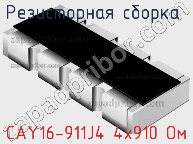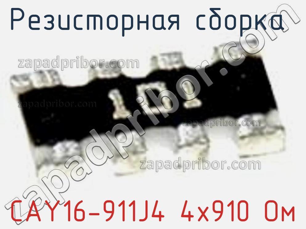 Основные характеристики резисторной сборки CAY16-911J4 4х910 Ом : CAY16-911J4 4х910 Ом, резисторная сборка (SMD)Чип- Резисторные сборки (smd resistor network) широко применяются в телекоммуникационном оборудовании, бытовых и промышленных электроприборах. Они оптимальны в случае необходимости экономии места на печатной плате. Основным преимуществом чип резисторных сборок перед сборками в dip корпусе является малая рассеиваемая мощность. Керамика чип резисторных сборок имеет сверху защитное покрытие, выводы соединены с металлизацией на керамике. Серия CAY отличается выпуклыми выводами. У сборок серии CAT выводы вогнутые. В сборках обеих серий 2, 4 или 8 резисторов.