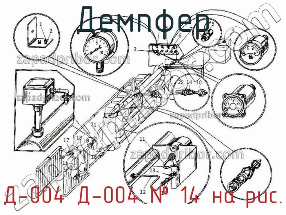 Наш отдел технического контроля гарантирует отсутствие брака и других несоответствий технической документации у всех демпферов представленных на нашем сайте. Для заказа Д-004 Д-004 обращайтесь в наш отдел продаж. Для получения более подробной информации о товаре, его доставке или у вас есть любой другой вопрос - позвоните нам и мы поможем вам окончательно определиться по поводу приобретения этого товара. Демпфер Д-004 Демпфер Д-004, номер 14 на чертеже, Установка контрольно-измерительных приборов и датчиков-реле и другие запасные части для , а также другие демпферы и похожие изделия представлены на сайте zapadpribor.com.