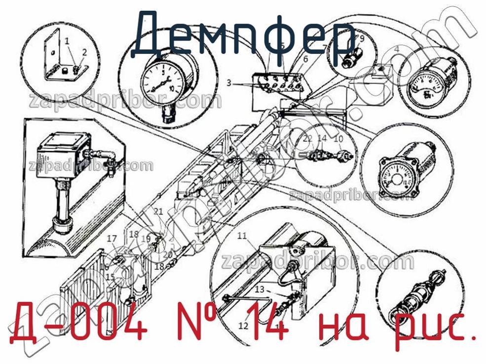 Мы даем гарантию на отсутствие брака или других несоответствий технической документации. По вопросам приобретения Д-004 обращайтесь в отдел продаж. Наши менеджеры предоставят всю интересующую Вас информацию по поводу цены, наличия, сроков доставки, гарантии или ответят на любые другие вопросы. Демпфер Д-004, номер 14 на чертеже, Установка контрольно-измерительных приборов и датчиков-реле и другие запасные части для , а также другие демпферы и похожие изделия представлены на сайте zapadpribor.com.