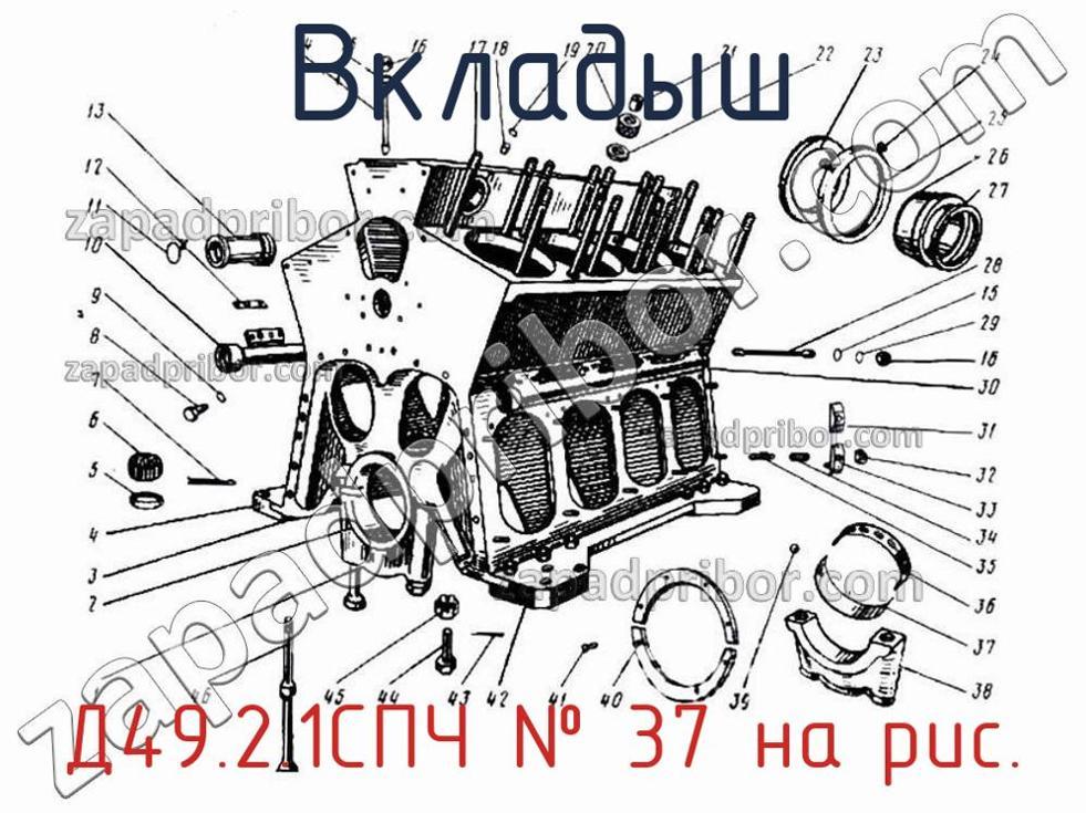 Мы даем гарантию на отсутствие брака или других несоответствий технической документации. По вопросам приобретения Д49.2.1СПЧ обращайтесь в отдел продаж. Наши менеджеры предоставят всю интересующую Вас информацию по поводу цены, наличия, сроков доставки, гарантии или ответят на любые другие вопросы. Вкладыш нижний, номер 37 на чертеже, Блок цилиндров 3А-6Д49.35спч и другие запасные части для 49 (Ч 26/26) , а также другие вкладыши и похожие изделия представлены на сайте zapadpribor.com.