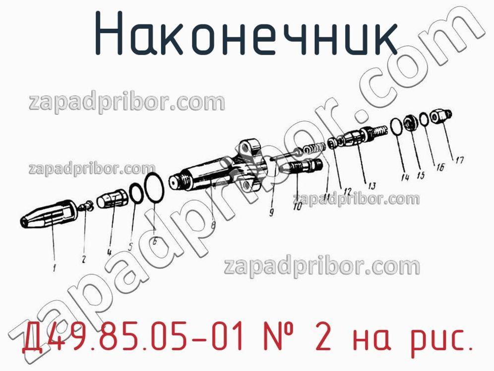 Наш отдел технического контроля гарантирует отсутствие брака или других несоответствий в технической документации или комплектации всех наконечников представленных на нашем сайте. Чтобы заказать Д49.85.05-01 обращайтесь в отдел продаж. Чтобы узнать цену, наличие, сроки поставки, срок гарантии и другие вопросы позвоните по телефонам указанным в контактах или оставьте заявку через форму обратной связи. Наконечник распылителя, номер 2 на чертеже, Форсунка Д49.85спч-01 и другие запасные части для 49 (Ч 26/26) , а также другие наконечники и похожие изделия представлены на сайте zapadpribor.com.