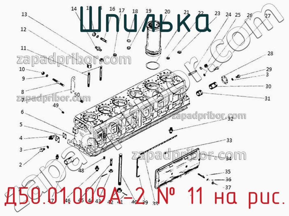 Наш отдел технического контроля гарантирует отсутствие брака и других несоответствий технической документации у всех шпилек представленных на нашем сайте. По вопросам покупки Д50.01.009А-2 обращайтесь в отдел продаж. Для информации о цене, наличии, сроках поставки, сроке гарантии и по других вопросах обращайтесь по телефонам, указанным в контактах или оставьте запрос через форму обратной связи. Шпилька крепления головки цилиндра Д50.01.009А-2, номер 11 на чертеже, Блок цилиндров 1Д50.01.001 и другие запасные части для ПДГ4А) , а также другие шпильки и похожие изделия представлены на сайте zapadpribor.com.