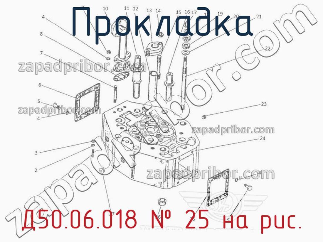 Наш отдел технического контроля гарантирует отсутствие брака и других несоответствий технической документации у всех прокладок представленных на нашем сайте. По вопросам покупки Д50.06.018 обращайтесь в отдел продаж. Для информации о цене, наличии, сроках поставки, сроке гарантии и по других вопросах обращайтесь по телефонам, указанным в контактах или оставьте запрос через форму обратной связи. Прокладка всасывающего коллектора Д50.06.018, номер 25 на чертеже, Крышка цилиндров Д50С.06.3 и другие запасные части для ПДГ4А), , а также другие прокладки и похожие изделия представлены на сайте zapadpribor.com.