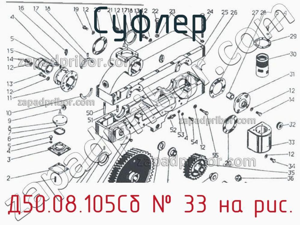 Компания гарантирует отсутствие каких-либо проблем у всех суфлеров, их комплектации и документации. Обратитесь в наш отдел продаж, если у вас есть потребность купить Д50.08.105Сб. Наши менеджеры всегда на связи, чтобы ответить на все ваши вопросы. Суфлер Д50.08.105Сб, номер 33 на чертеже, Привод распредвала Д50.08 и другие запасные части для ПДГ4А) , а также другие суфлеры и похожие изделия представлены на сайте zapadpribor.com.
