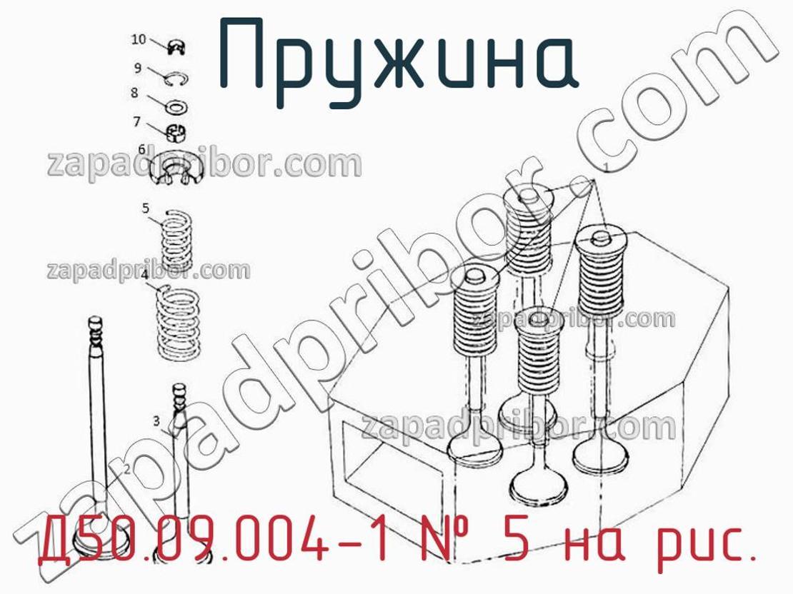Наш отдел технического контроля гарантирует отсутствие брака и других несоответствий технической документации у всех пружин представленных на нашем сайте. Для заказа Д50.09.004-1 обращайтесь в наш отдел продаж. Для получения более подробной информации о товаре, его доставке или у вас есть любой другой вопрос - позвоните нам и мы поможем вам окончательно определиться по поводу приобретения этого товара. Пружина клапана ( малая ) Д50.09.004-1, номер 5 на чертеже, Клапан впускной Д50.09.009 и выпускной Д50.09.010 и другие запасные части для ПДГ4А) , а также другие пружины и похожие изделия представлены на сайте zapadpribor.com.