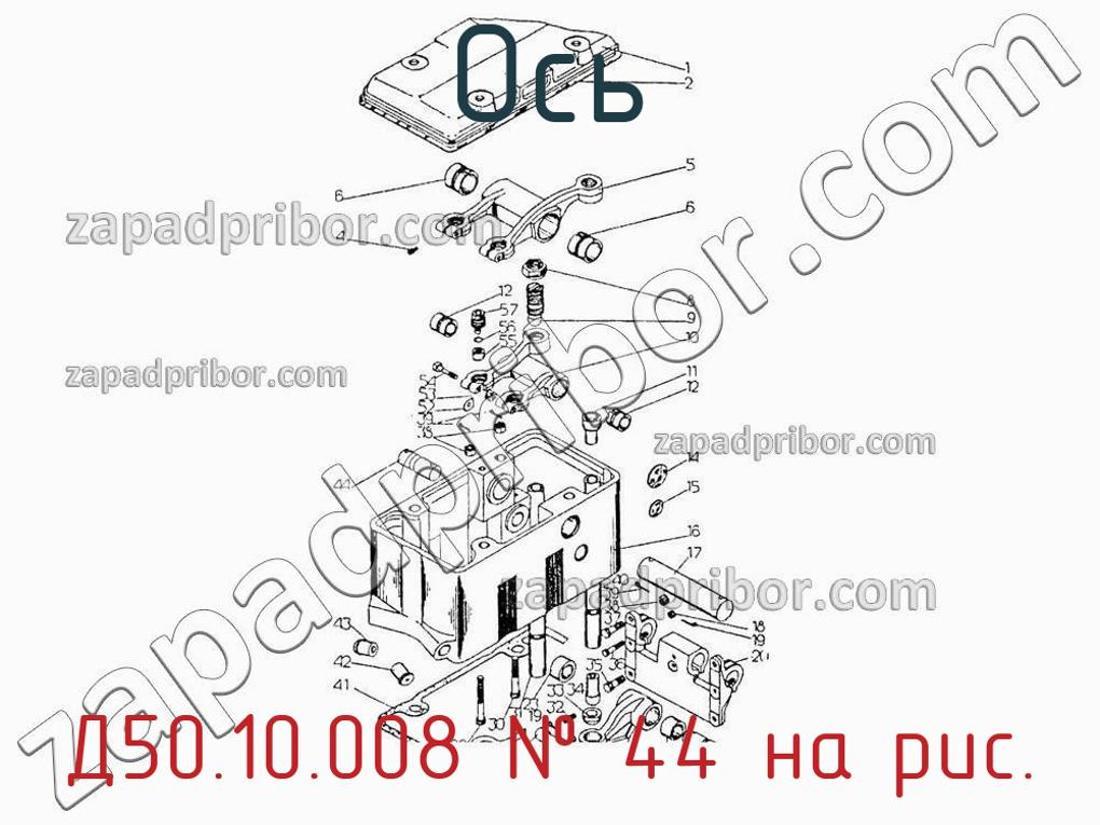 Компания гарантирует отсутствие каких-либо проблем у всех осей, их комплектации и документации. Обратитесь в наш отдел продаж, если у вас есть потребность купить Д50.10.008. Наши менеджеры всегда на связи, чтобы ответить на все ваши вопросы. Ось рычага впуска Д50.10.008, номер 44 на чертеже, Привод клапанов 10гр.-014 и другие запасные части для ПДГ4А) , а также другие оси и похожие изделия представлены на сайте zapadpribor.com.