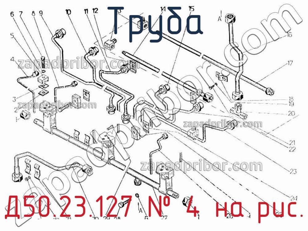 Мы даем гарантию на отсутствие брака или других несоответствий технической документации. По вопросам приобретения Д50.23.127 обращайтесь в отдел продаж. Наши менеджеры предоставят всю интересующую Вас информацию по поводу цены, наличия, сроков доставки, гарантии или ответят на любые другие вопросы. Труба Д50.23.127, номер 4 на чертеже, Трубопровод топливный Д50.23 и другие запасные части для ПДГ4А) , а также другие трубы и похожие изделия представлены на сайте zapadpribor.com.