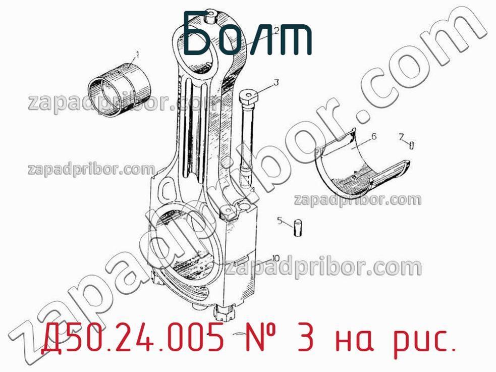 Мы даем гарантию на отсутствие брака или других несоответствий технической документации. Для приобретения Д50.24.005 обращайтесь в наш отдел продаж. Информацию о цене, наличию, срокам доставки, гарантии и любые другие вопросы уточняйте у наших менеджеров. Болт шатуна Д50.24.005, номер 3 на чертеже, Шатун Д50.24.001 и другие запасные части для ПДГ4А) , а также другие болты и похожие изделия представлены на сайте zapadpribor.com.