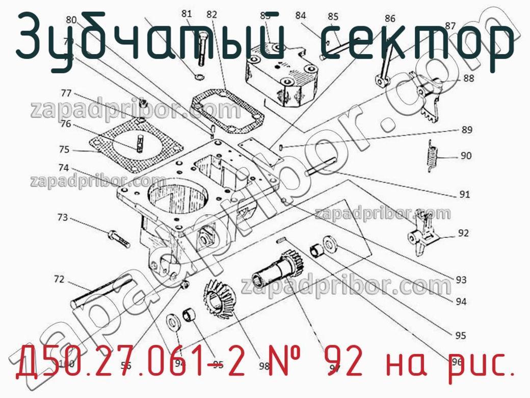 ОТК компании гарантирует отсутствие брака у всех зубчатых секторов представленных на нашем сайте. Для покупки Д50.27.061-2 обратитесь в отдел продаж. Относительно информации о цене, наличии, сроках поставки, гарантии обращайтесь по телефонам, указанным в контактах или оставьте запрос через форму обратной связи. Зубчатый сектор Д50.27.061-2, номер 92 на чертеже, Насос топливный 27гр.-032 и другие запасные части для ПДГ4А) , а также другие зубчатые сектора и похожие изделия представлены на сайте zapadpribor.com.