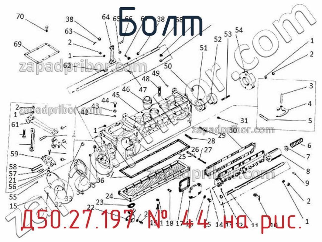 Наш отдел технического контроля гарантирует отсутствие брака и других несоответствий технической документации у всех болтов представленных на нашем сайте. Для заказа Д50.27.197 обращайтесь в наш отдел продаж. Для получения более подробной информации о товаре, его доставке или у вас есть любой другой вопрос - позвоните нам и мы поможем вам окончательно определиться по поводу приобретения этого товара. Болт регулировочный Д50.27.197, номер 44 на чертеже, Насос топливный 27гр.-031 и другие запасные части для ПДГ4А) , а также другие болты и похожие изделия представлены на сайте zapadpribor.com.