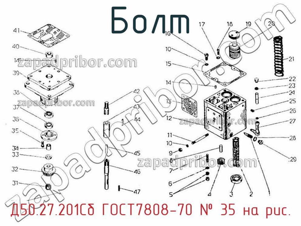 Наш отдел технического контроля гарантирует отсутствие брака и других несоответствий технической документации у всех болтов представленных на нашем сайте. По вопросам покупки Д50.27.201Сб ГОСТ7808-70 обращайтесь в отдел продаж. Для информации о цене, наличии, сроках поставки, сроке гарантии и по других вопросах обращайтесь по телефонам, указанным в контактах или оставьте запрос через форму обратной связи. Д50.27.201Сб Болт ГОСТ7808-70, номер 35 на чертеже, Регулятор всережимный Д50.27.200С6-043 и другие запасные части для ПДГ4А) , а также другие болты и похожие изделия представлены на сайте zapadpribor.com.