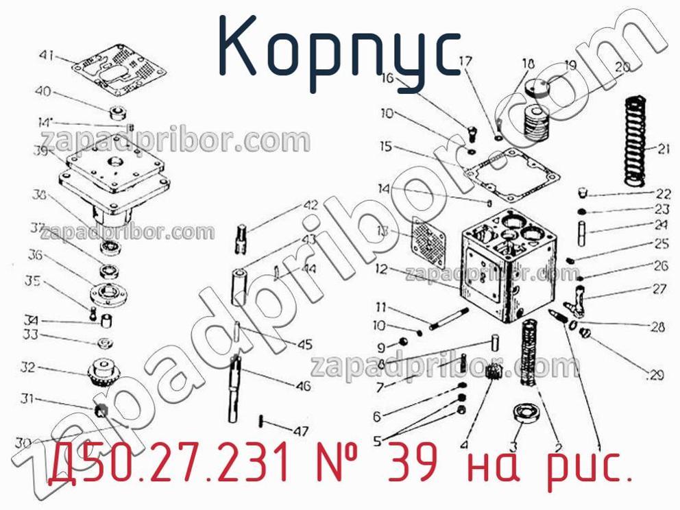 ОТК компании гарантирует отсутствие дефектов у всех корпусов на нашем сайте. Для покупки Д50.27.231 свяжитесь с отделом продаж. Менеджеры компании предоставят всю информацию о цене, наличии, сроках доставки, гарантии и ответят на любые другие вопросы. Корпус нижний Д50.27.231, номер 39 на чертеже, Регулятор всережимный Д50.27.200С6-043 и другие запасные части для ПДГ4А) , а также другие корпуса и похожие изделия представлены на сайте zapadpribor.com.