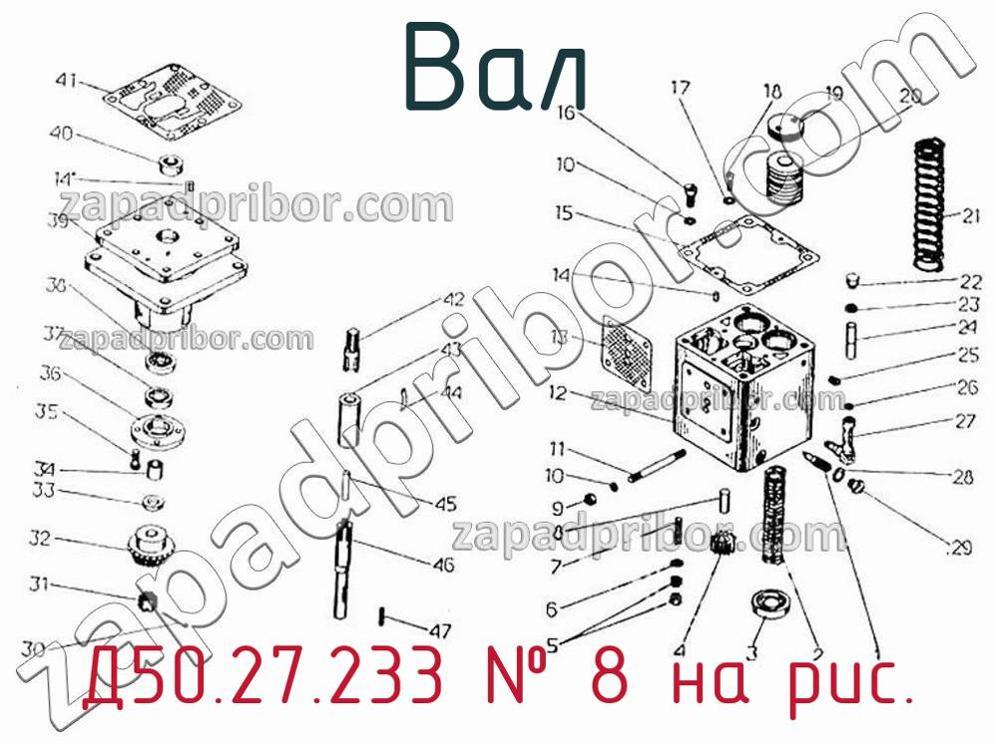 Мы даем гарантию на отсутствие брака или других несоответствий технической документации. По вопросам приобретения Д50.27.233 обращайтесь в отдел продаж. Наши менеджеры предоставят всю интересующую Вас информацию по поводу цены, наличия, сроков доставки, гарантии или ответят на любые другие вопросы. Вал привода Д50.27.233, номер 46 на чертеже, Регулятор всережимный Д50.27.200С6-043 и другие запасные части для ПДГ4А) , а также другие валы и похожие изделия представлены на сайте zapadpribor.com.