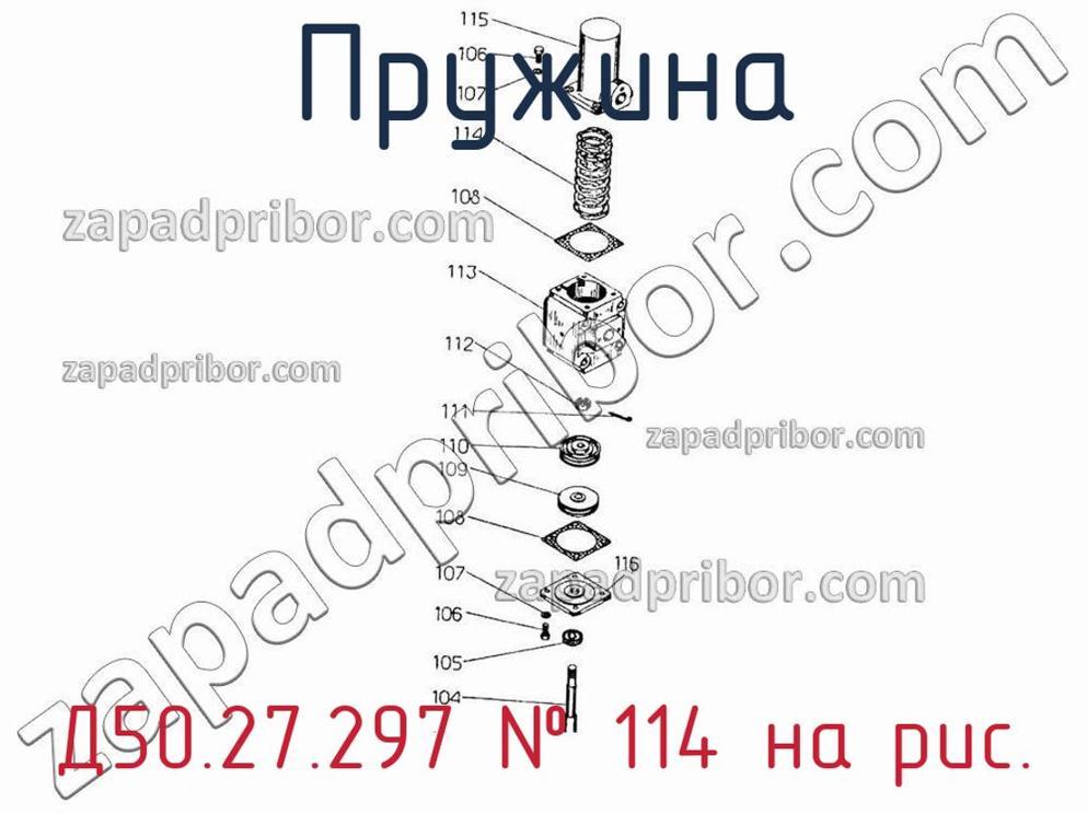 Наш отдел технического контроля гарантирует отсутствие брака или других несоответствий в технической документации или комплектации всех пружин представленных на нашем сайте. Чтобы заказать Д50.27.297 обращайтесь в отдел продаж. Чтобы узнать цену, наличие, сроки поставки, срок гарантии и другие вопросы позвоните по телефонам указанным в контактах или оставьте заявку через форму обратной связи. Пружина Д50.27.297, номер 114 на чертеже, Регулятор всережимный Д50.27.200С6-046 и другие запасные части для ПДГ4А) , а также другие пружины и похожие изделия представлены на сайте zapadpribor.com.