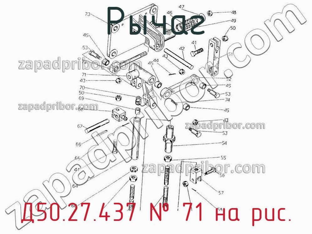 ОТК компании гарантирует отсутствие дефектов у всех рычагов на нашем сайте. Для покупки Д50.27.437 свяжитесь с отделом продаж. Менеджеры компании предоставят всю информацию о цене, наличии, сроках доставки, гарантии и ответят на любые другие вопросы. Рычаг двухвильчатый Д50.27.437, номер 71 на чертеже, Управление регулятором 43гр.-049 и другие запасные части для ПДГ4А) , а также другие рычаги и похожие изделия представлены на сайте zapadpribor.com.