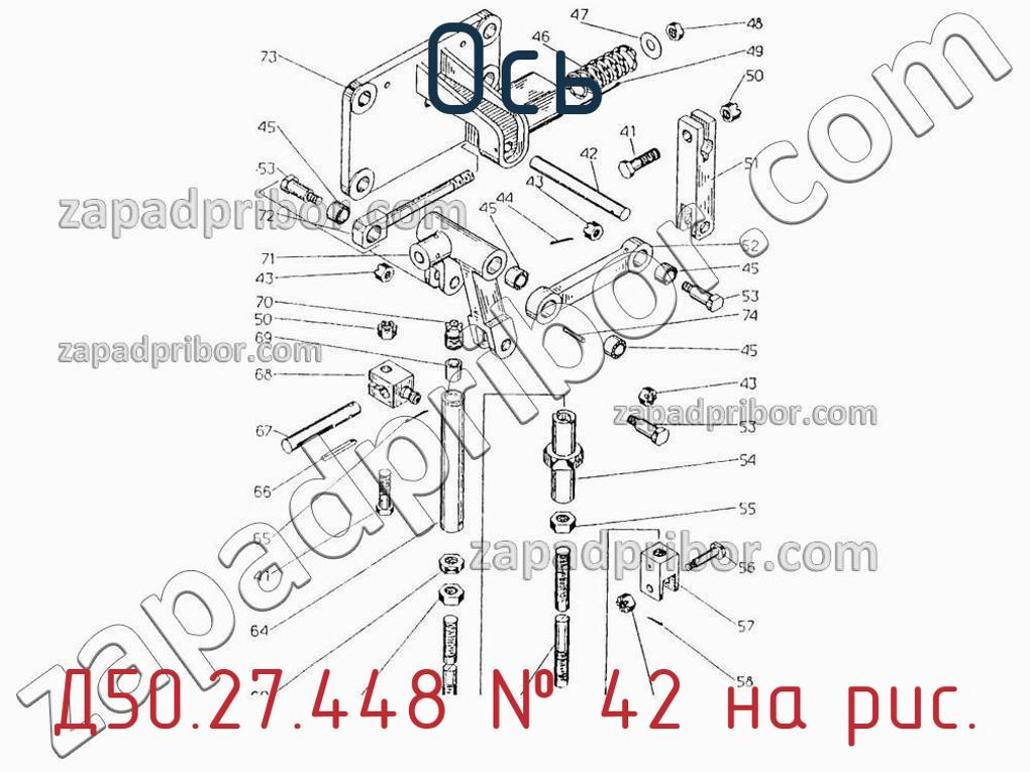 Мы даем гарантию на отсутствие брака или других несоответствий технической документации. Для приобретения Д50.27.448 обращайтесь в наш отдел продаж. Информацию о цене, наличию, срокам доставки, гарантии и любые другие вопросы уточняйте у наших менеджеров. Ось рычага Д50.27.448, номер 42 на чертеже, Управление регулятором 43гр.-049 и другие запасные части для ПДГ4А) , а также другие оси и похожие изделия представлены на сайте zapadpribor.com.