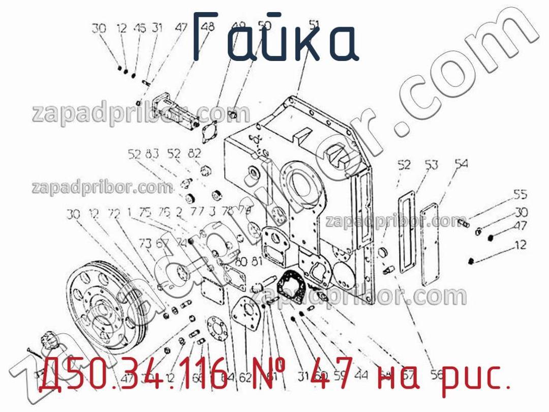 Наш отдел технического контроля гарантирует отсутствие брака и других несоответствий технической документации у всех гаек представленных на нашем сайте. Для заказа Д50.34.116 обращайтесь в наш отдел продаж. Для получения более подробной информации о товаре, его доставке или у вас есть любой другой вопрос - позвоните нам и мы поможем вам окончательно определиться по поводу приобретения этого товара. Гайка Д50.34.116, номер 47 на чертеже, Привод масляного насоса, вентилятора и фильтры 34 гр.-039 и другие запасные части для ПДГ4А) , а также другие гайки и похожие изделия представлены на сайте zapadpribor.com.