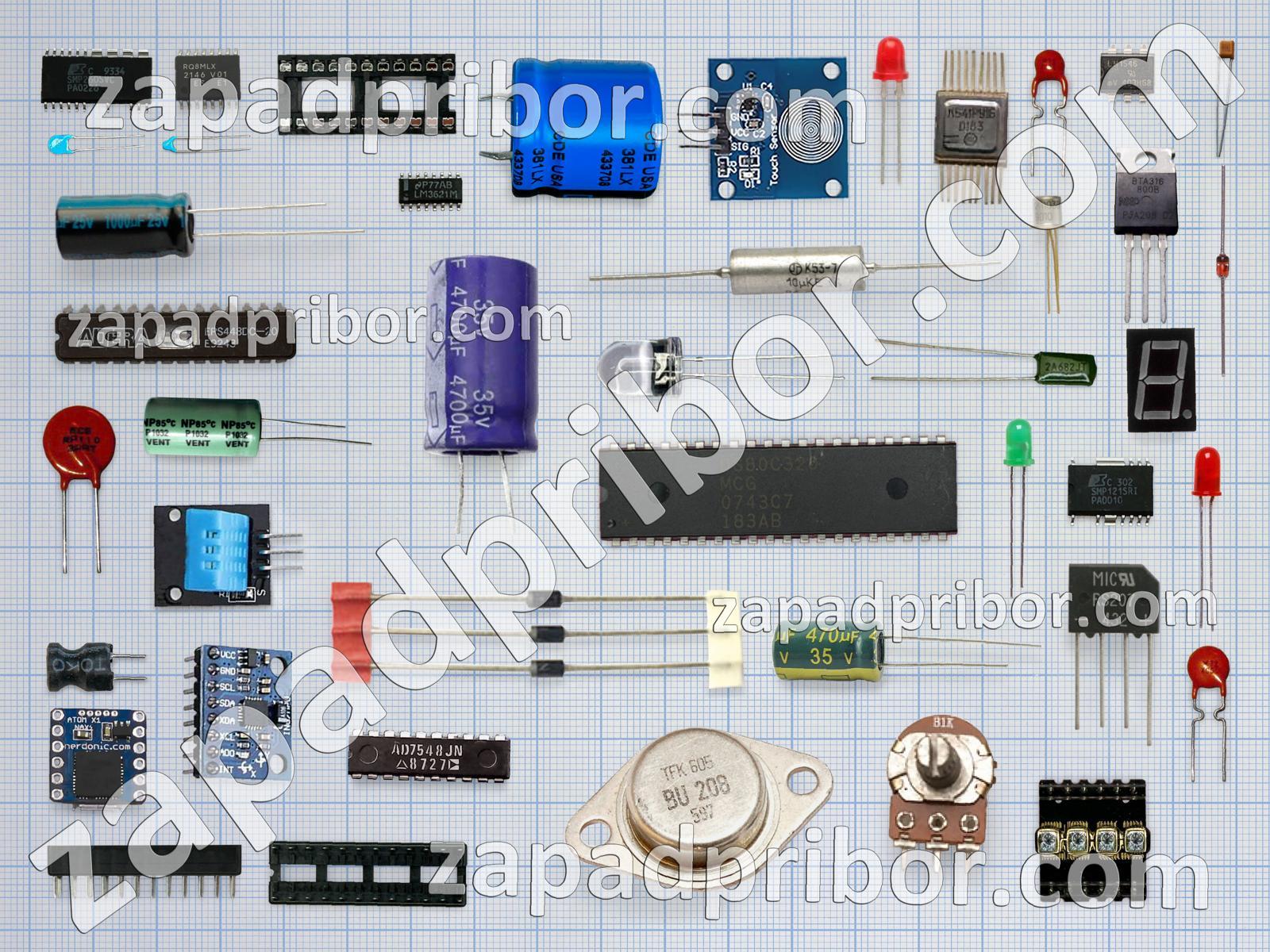 Кроме этих радиодеталей на нашем сайте вы сможете найти большой перечень компонентов. Осуществляйте поиск по основным типам радиодеталей таких как тиристор, контакты, микросхема, датчик, диодный мост, реле, диод, трансформатор, дроссель, экран, резонатор, индуктивность, адаптер, усилитель, разъем, соединитель, конденсатор, тумблер, фотодиод, транзистор, светодиод, переключатель, преобразователь, индикатор, резистор, дисплей, колодки, кнопка и другие.