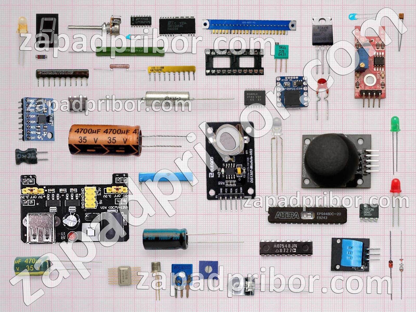 Кроме этих радиодеталей на нашем сайте вы сможете найти большой перечень компонентов. Осуществляйте поиск по основным типам радиодеталей таких как преобразователь, реле, экран, резистор, разъем, индуктивность, кнопка, дисплей, переключатель, транзистор, диодный мост, соединитель, фотодиод, контакты, дроссель, светодиод, индикатор, резонатор, адаптер, микросхема, трансформатор, диод, усилитель, конденсатор, датчик, колодки, тиристор, тумблер и другие.