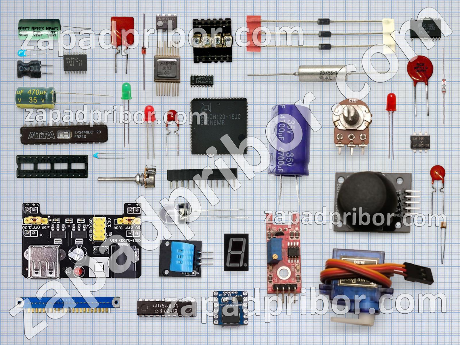 Кроме этих радиодеталей на нашем сайте вы сможете найти большой перечень компонентов. Осуществляйте поиск по основным типам радиодеталей таких как микросхема, усилитель, кнопка, индуктивность, дисплей, индикатор, тумблер, светодиод, фотодиод, колодки, конденсатор, диодный мост, разъем, трансформатор, резонатор, дроссель, экран, переключатель, датчик, тиристор, реле, диод, транзистор, адаптер, резистор, соединитель, контакты, преобразователь и другие.