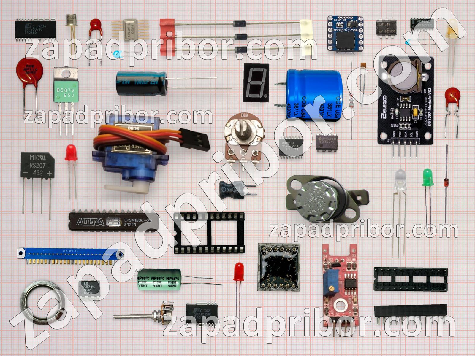 Кроме этих радиодеталей на нашем сайте вы сможете найти большой перечень компонентов. Осуществляйте поиск по основным типам радиодеталей таких как дисплей, индикатор, экран, микросхема, разъем, диод, светодиод, колодки, конденсатор, фотодиод, контакты, индуктивность, транзистор, резонатор, кнопка, тиристор, преобразователь, усилитель, адаптер, соединитель, тумблер, реле, резистор, диодный мост, датчик, дроссель, переключатель, трансформатор и другие.