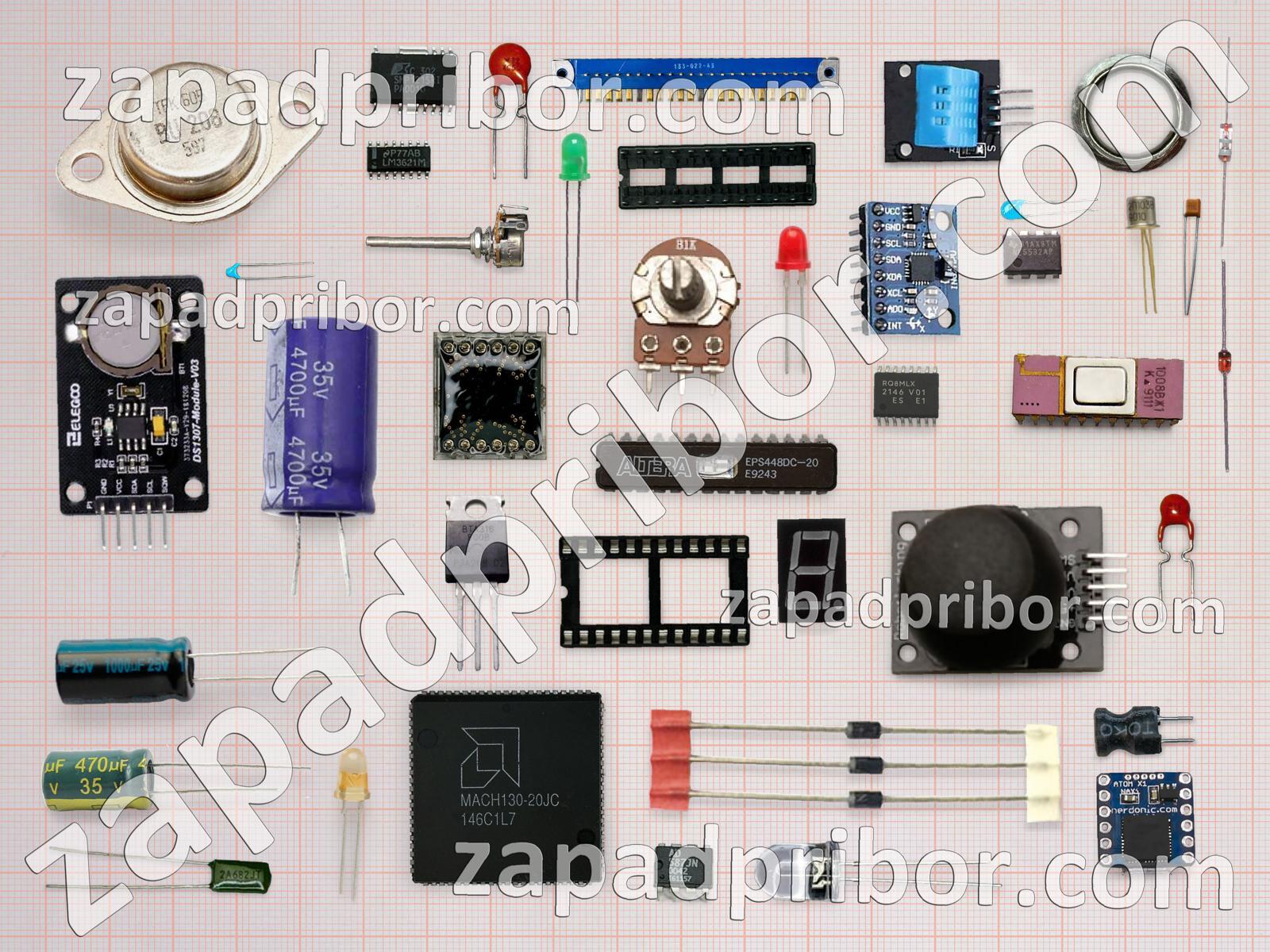 Кроме этих радиодеталей на нашем сайте вы сможете найти большой перечень компонентов. Осуществляйте поиск по основным типам радиодеталей таких как контакты, диод, транзистор, диодный мост, экран, усилитель, трансформатор, резонатор, разъем, индикатор, дисплей, светодиод, фотодиод, колодки, микросхема, соединитель, преобразователь, реле, дроссель, адаптер, индуктивность, кнопка, датчик, переключатель, тиристор, тумблер, резистор, конденсатор и другие.