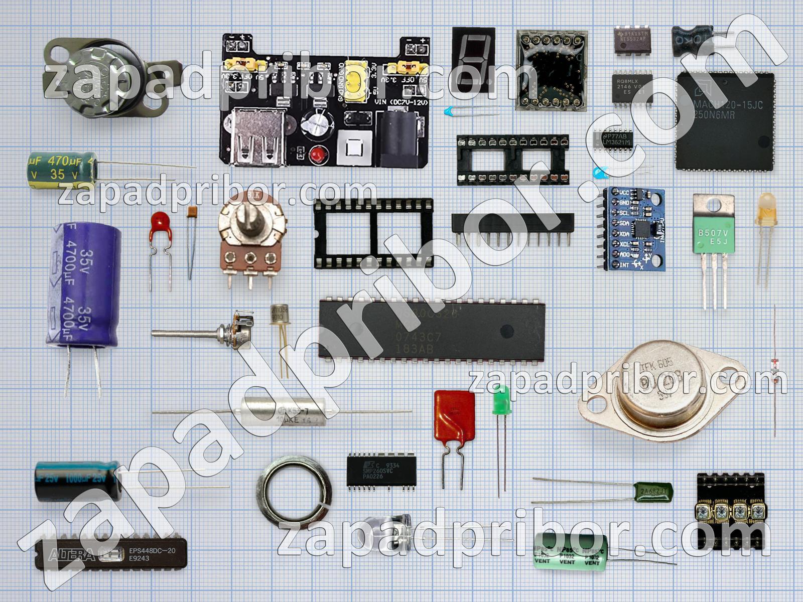 Кроме этих радиодеталей на нашем сайте вы сможете найти большой перечень компонентов. Осуществляйте поиск по основным типам радиодеталей таких как дисплей, преобразователь, индуктивность, соединитель, реле, датчик, диод, разъем, кнопка, конденсатор, диодный мост, микросхема, колодки, светодиод, адаптер, индикатор, резистор, дроссель, переключатель, фотодиод, тумблер, резонатор, трансформатор, тиристор, экран, усилитель, контакты, транзистор и другие.