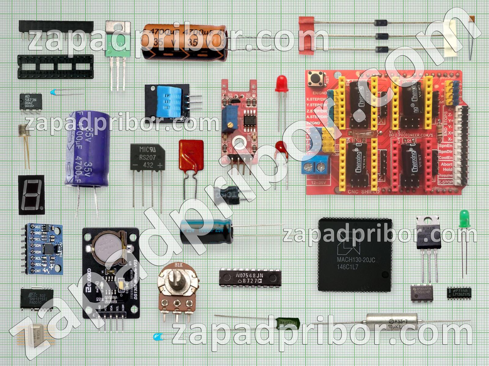 Кроме этих радиодеталей на нашем сайте вы сможете найти большой перечень компонентов. Осуществляйте поиск по основным типам радиодеталей таких как микросхема, кнопка, индикатор, дроссель, фотодиод, контакты, резистор, переключатель, конденсатор, соединитель, дисплей, тумблер, резонатор, светодиод, адаптер, колодки, индуктивность, реле, трансформатор, диод, разъем, тиристор, преобразователь, датчик, транзистор, диодный мост, экран, усилитель и другие.