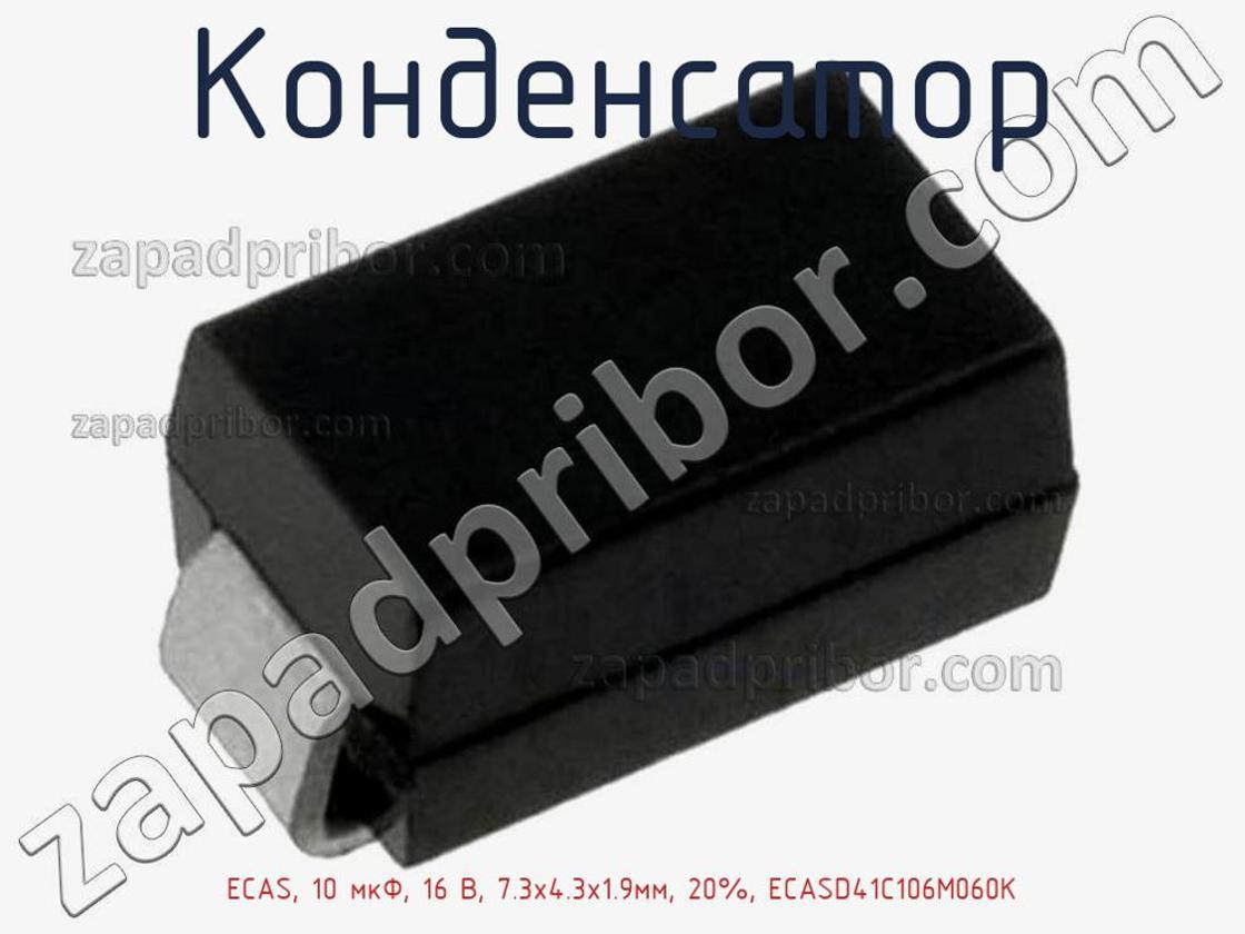 Конденсатор ECAS, 10 мкФ, 16 В, 7.3х4.3х1.9мм, 20%, ECASD41C106M060K