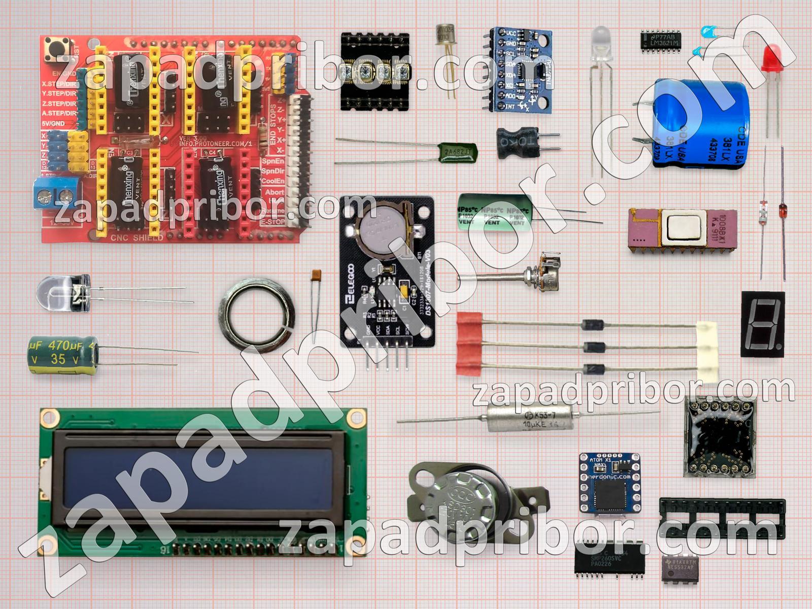 Кроме этих радиодеталей на нашем сайте вы сможете найти большой перечень компонентов. Осуществляйте поиск по основным типам радиодеталей таких как индуктивность, конденсатор, экран, тиристор, реле, дисплей, кнопка, диодный мост, датчик, индикатор, резистор, преобразователь, адаптер, резонатор, переключатель, светодиод, дроссель, микросхема, соединитель, усилитель, фотодиод, трансформатор, контакты, колодки, транзистор, диод, разъем, тумблер и другие.