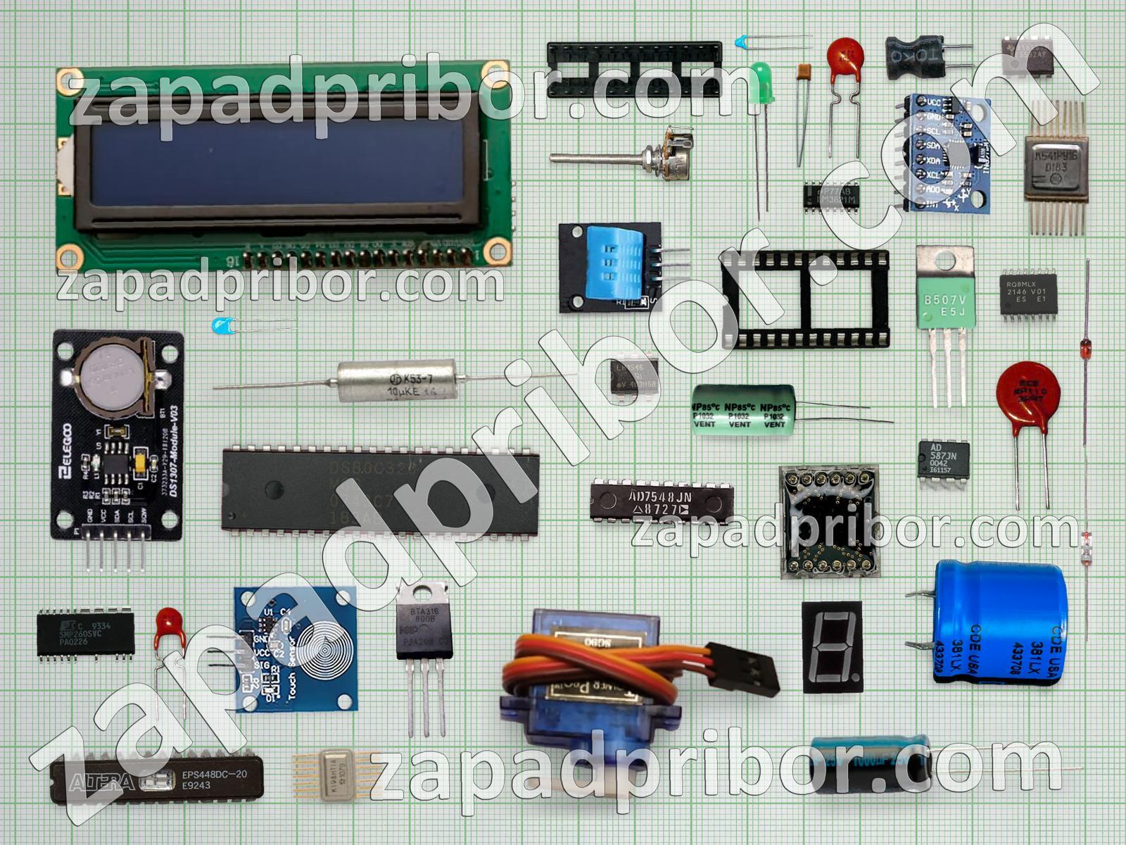 Кроме этих радиодеталей на нашем сайте вы сможете найти большой перечень компонентов. Осуществляйте поиск по основным типам радиодеталей таких как контакты, переключатель, экран, дисплей, диод, дроссель, колодки, усилитель, транзистор, кнопка, индуктивность, резистор, тиристор, диодный мост, микросхема, трансформатор, тумблер, реле, фотодиод, резонатор, светодиод, соединитель, датчик, адаптер, преобразователь, индикатор, разъем, конденсатор и другие.