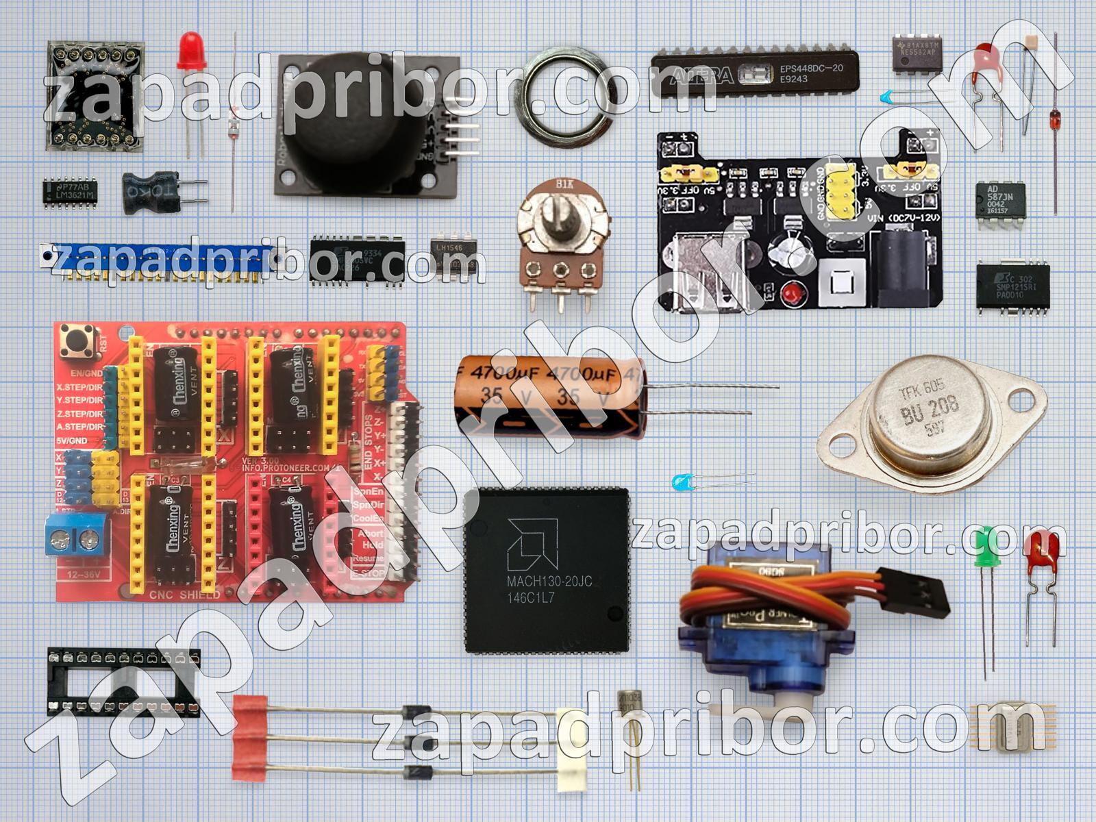 Кроме этих радиодеталей на нашем сайте вы сможете найти большой перечень компонентов. Осуществляйте поиск по основным типам радиодеталей таких как тиристор, адаптер, датчик, соединитель, экран, светодиод, фотодиод, индикатор, транзистор, конденсатор, микросхема, кнопка, диод, индуктивность, колодки, контакты, диодный мост, дисплей, тумблер, усилитель, резистор, резонатор, реле, разъем, преобразователь, трансформатор, дроссель, переключатель и другие.
