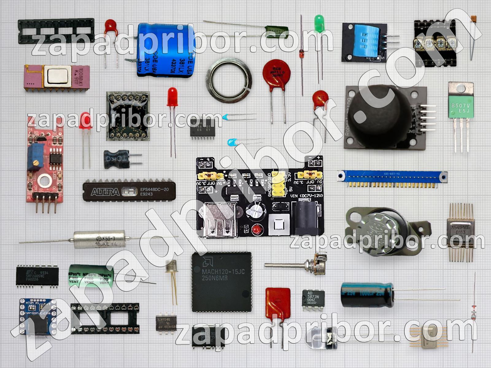 Кроме этих радиодеталей на нашем сайте вы сможете найти большой перечень компонентов. Осуществляйте поиск по основным типам радиодеталей таких как тумблер, адаптер, фотодиод, индикатор, микросхема, колодки, диод, индуктивность, конденсатор, тиристор, усилитель, разъем, транзистор, трансформатор, преобразователь, соединитель, датчик, экран, светодиод, реле, кнопка, резонатор, резистор, дроссель, диодный мост, дисплей, контакты, переключатель и другие.