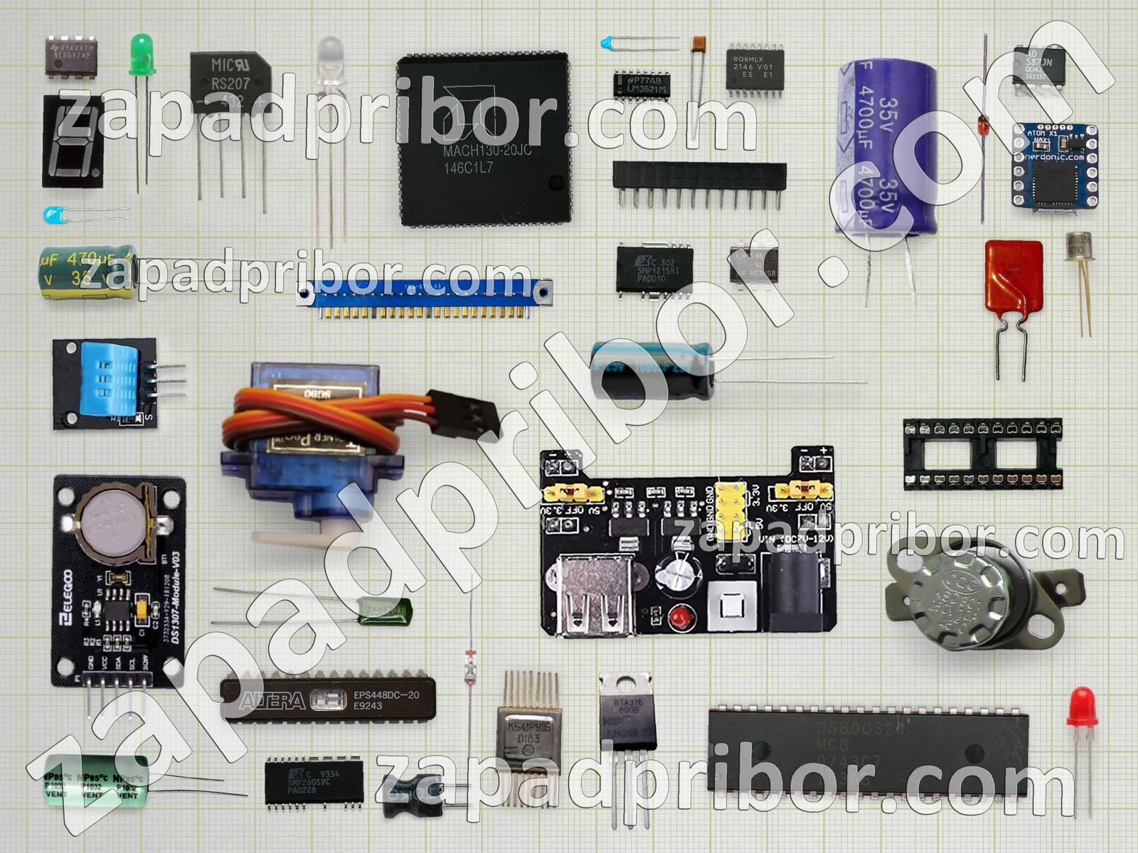Кроме этих радиодеталей на нашем сайте вы сможете найти большой перечень компонентов. Осуществляйте поиск по основным типам радиодеталей таких как диодный мост, экран, датчик, индуктивность, усилитель, разъем, резистор, адаптер, переключатель, индикатор, микросхема, кнопка, фотодиод, конденсатор, трансформатор, резонатор, колодки, диод, тумблер, дроссель, светодиод, соединитель, реле, транзистор, тиристор, преобразователь, контакты, дисплей и другие.