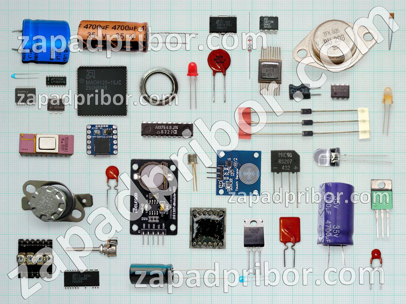 Кроме этих радиодеталей на нашем сайте вы сможете найти большой перечень компонентов. Осуществляйте поиск по основным типам радиодеталей таких как индикатор, адаптер, дроссель, тумблер, резонатор, кнопка, фотодиод, дисплей, светодиод, колодки, диод, экран, реле, транзистор, разъем, индуктивность, тиристор, переключатель, датчик, резистор, контакты, преобразователь, микросхема, трансформатор, усилитель, конденсатор, соединитель, диодный мост и другие.
