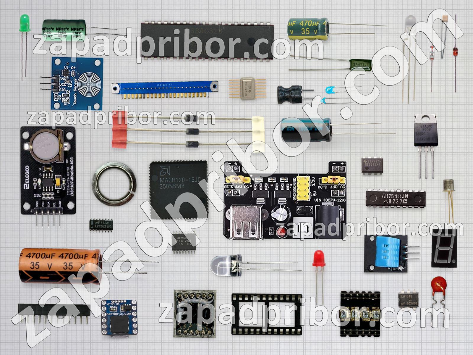 Кроме этих радиодеталей на нашем сайте вы сможете найти большой перечень компонентов. Осуществляйте поиск по основным типам радиодеталей таких как колодки, диодный мост, тиристор, светодиод, экран, дроссель, дисплей, трансформатор, контакты, индикатор, резистор, резонатор, фотодиод, кнопка, диод, преобразователь, тумблер, конденсатор, разъем, соединитель, микросхема, датчик, индуктивность, усилитель, реле, переключатель, адаптер, транзистор и другие.