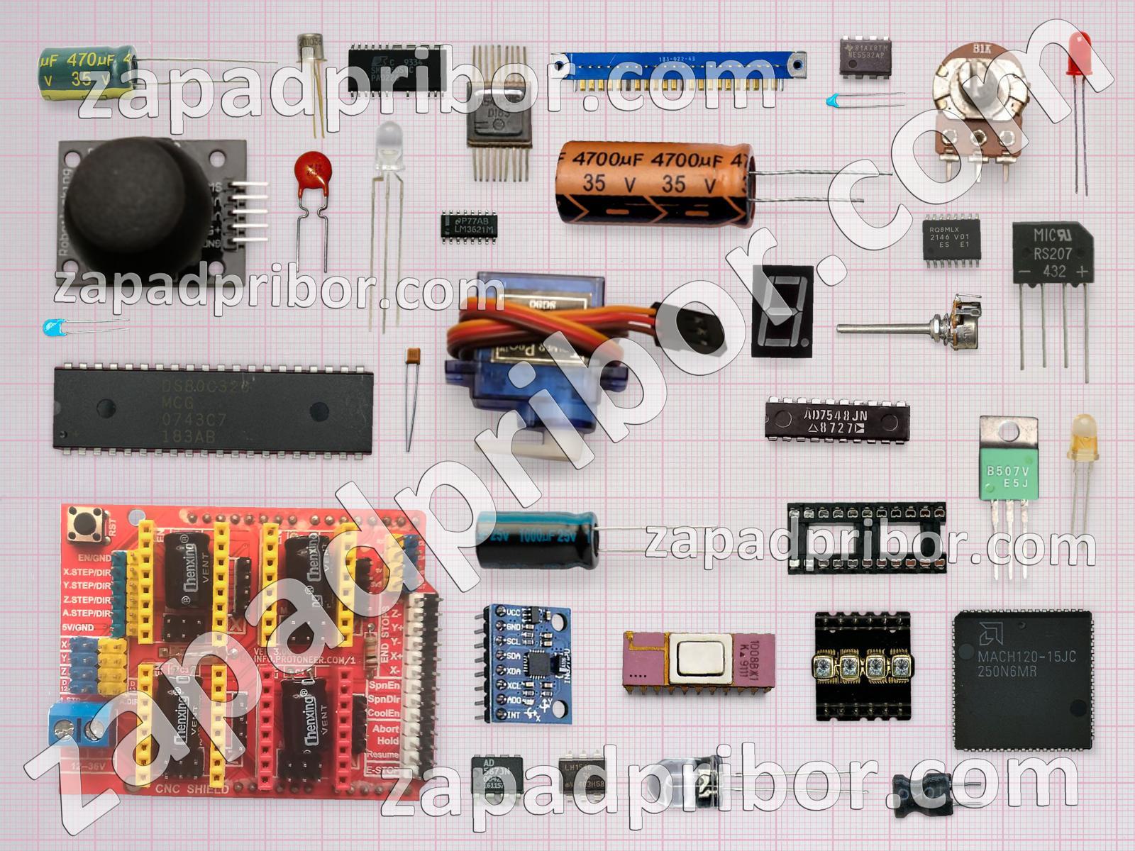 Кроме этих радиодеталей на нашем сайте вы сможете найти большой перечень компонентов. Осуществляйте поиск по основным типам радиодеталей таких как экран, тумблер, индуктивность, колодки, трансформатор, разъем, преобразователь, кнопка, соединитель, конденсатор, микросхема, датчик, тиристор, диод, усилитель, контакты, индикатор, диодный мост, дроссель, переключатель, резонатор, адаптер, светодиод, фотодиод, реле, дисплей, резистор, транзистор и другие.