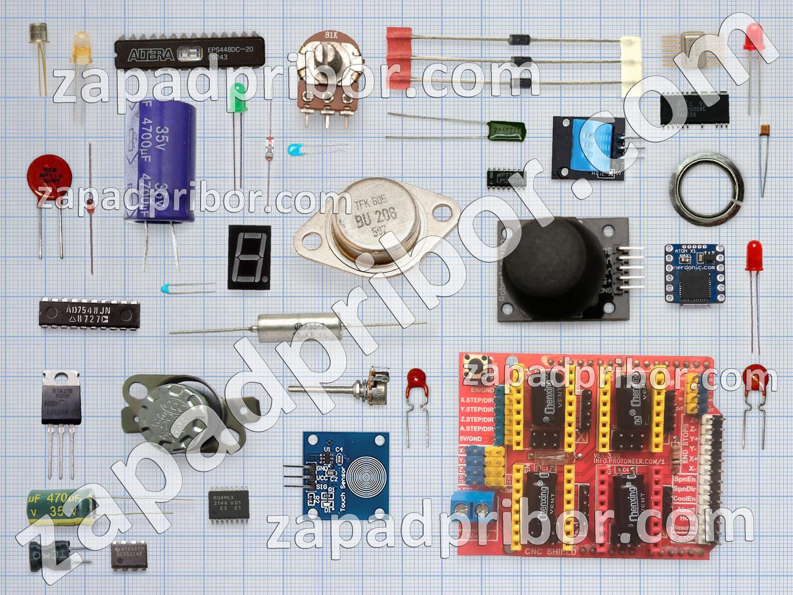 Кроме этих радиодеталей на нашем сайте вы сможете найти большой перечень компонентов. Осуществляйте поиск по основным типам радиодеталей таких как дисплей, дроссель, индуктивность, адаптер, тумблер, кнопка, резистор, конденсатор, усилитель, колодки, микросхема, индикатор, экран, преобразователь, диод, транзистор, светодиод, переключатель, соединитель, трансформатор, тиристор, реле, фотодиод, датчик, контакты, диодный мост, резонатор, разъем и другие.