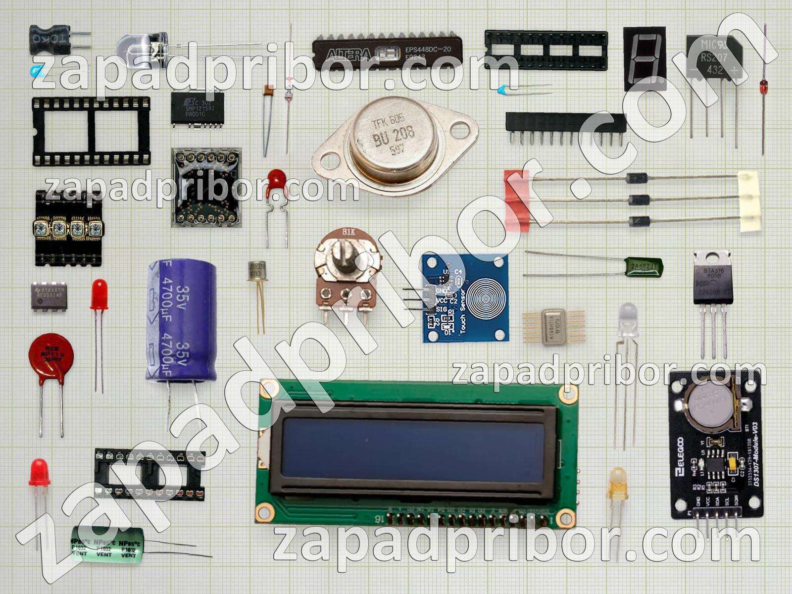 Кроме этих радиодеталей на нашем сайте вы сможете найти большой перечень компонентов. Осуществляйте поиск по основным типам радиодеталей таких как соединитель, диодный мост, диод, микросхема, фотодиод, резонатор, транзистор, усилитель, реле, конденсатор, колодки, индуктивность, экран, переключатель, датчик, преобразователь, контакты, резистор, дисплей, тиристор, индикатор, светодиод, тумблер, кнопка, разъем, дроссель, адаптер, трансформатор и другие.