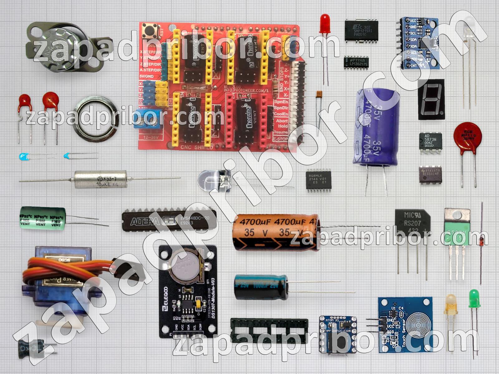 Кроме этих радиодеталей на нашем сайте вы сможете найти большой перечень компонентов. Осуществляйте поиск по основным типам радиодеталей таких как усилитель, переключатель, колодки, индикатор, соединитель, контакты, индуктивность, трансформатор, тиристор, фотодиод, резонатор, светодиод, конденсатор, дисплей, резистор, адаптер, кнопка, диодный мост, транзистор, датчик, реле, разъем, экран, микросхема, тумблер, преобразователь, дроссель, диод и другие.