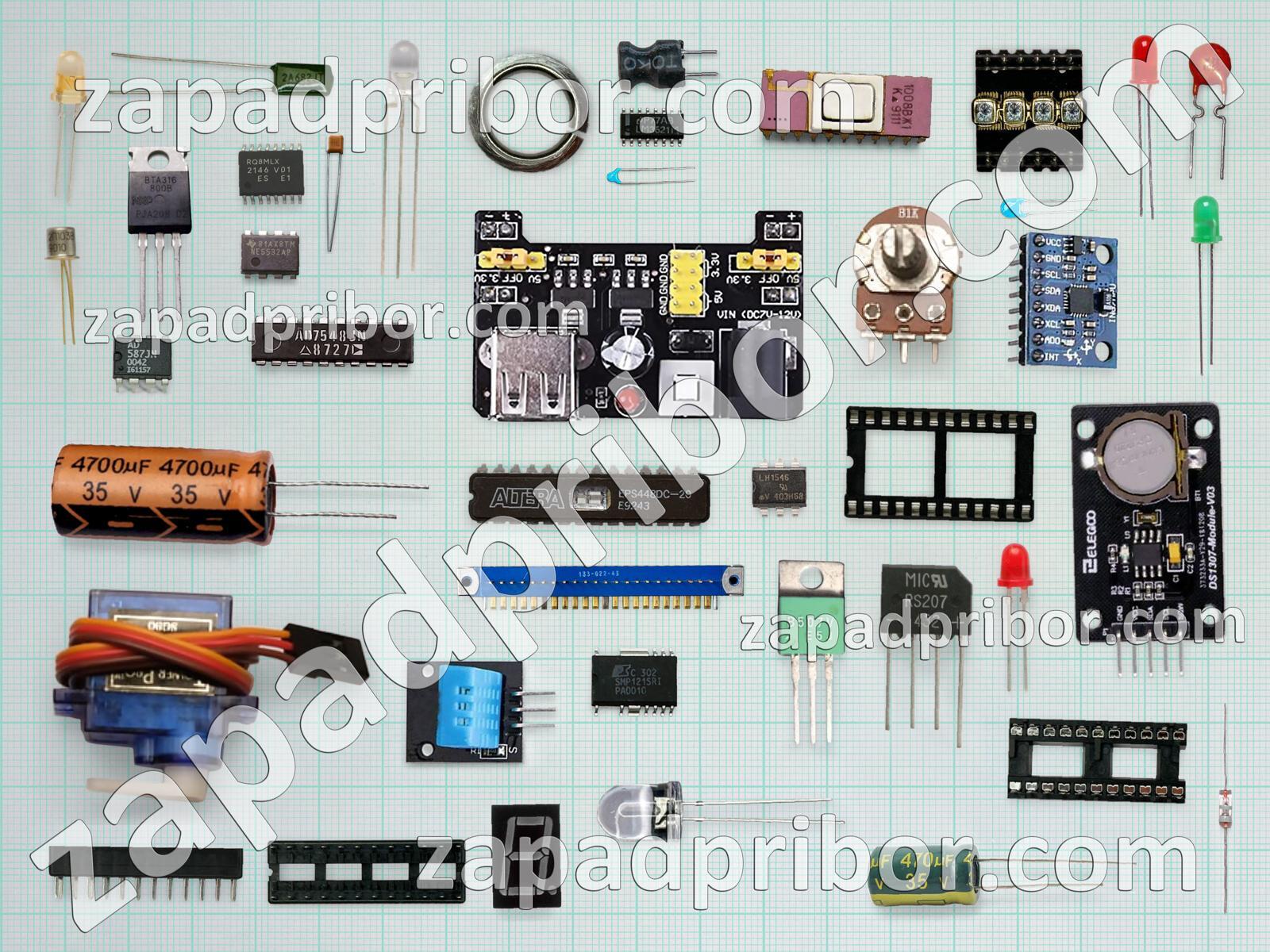 Кроме этих радиодеталей на нашем сайте вы сможете найти большой перечень компонентов. Осуществляйте поиск по основным типам радиодеталей таких как переключатель, адаптер, резистор, индикатор, резонатор, дроссель, трансформатор, диод, разъем, экран, диодный мост, фотодиод, преобразователь, транзистор, датчик, индуктивность, конденсатор, кнопка, тиристор, дисплей, микросхема, светодиод, тумблер, усилитель, соединитель, контакты, колодки, реле и другие.
