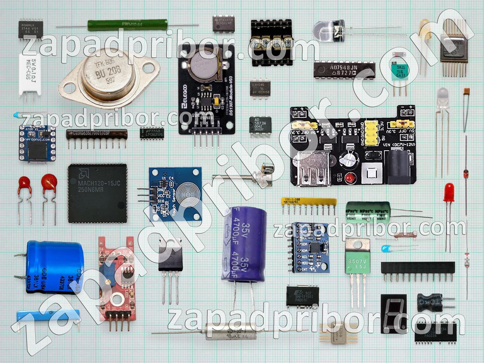Кроме этих радиодеталей на нашем сайте вы сможете найти большой перечень компонентов. Осуществляйте поиск по основным типам радиодеталей таких как тумблер, дроссель, колодки, преобразователь, соединитель, разъем, экран, адаптер, трансформатор, переключатель, резонатор, транзистор, дисплей, фотодиод, светодиод, диод, конденсатор, индикатор, кнопка, тиристор, контакты, реле, микросхема, индуктивность, диодный мост, усилитель, резистор, датчик и другие.