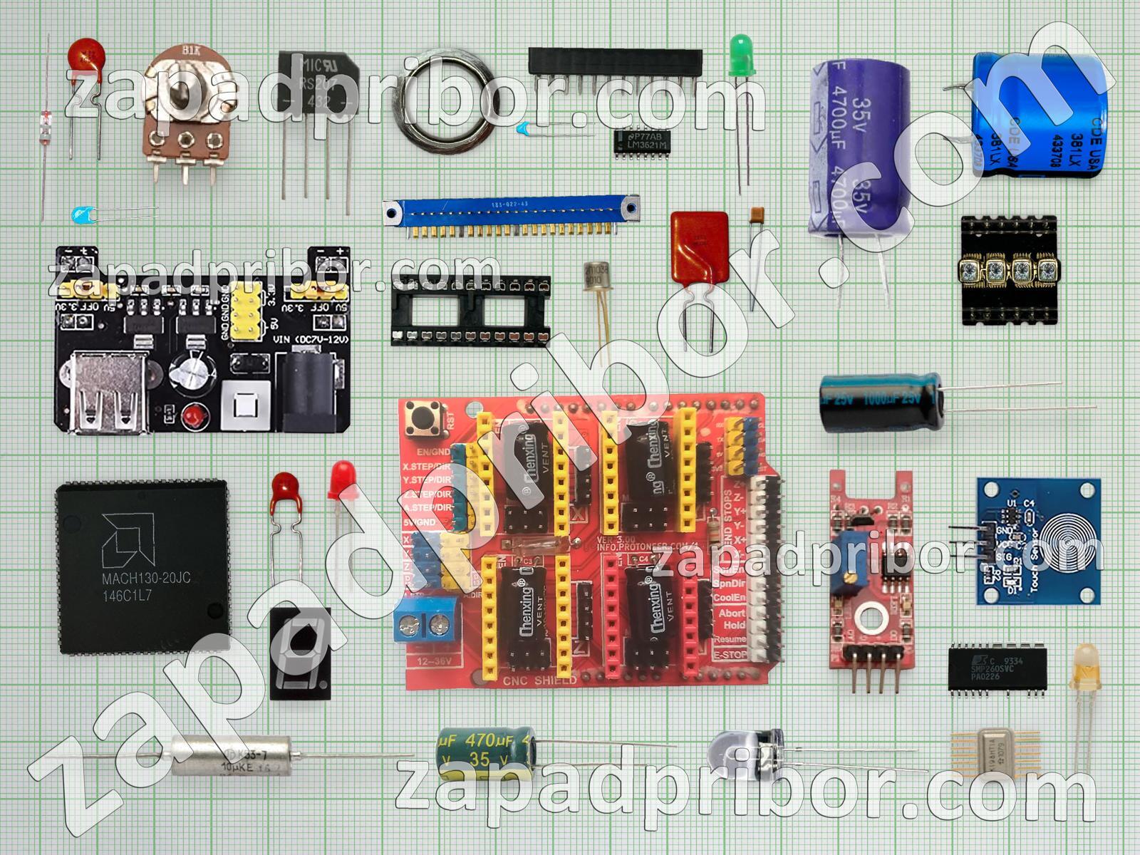 Кроме этих радиодеталей на нашем сайте вы сможете найти большой перечень компонентов. Осуществляйте поиск по основным типам радиодеталей таких как экран, кнопка, резонатор, транзистор, микросхема, светодиод, соединитель, дисплей, конденсатор, тиристор, фотодиод, диод, индуктивность, адаптер, дроссель, реле, контакты, преобразователь, диодный мост, тумблер, разъем, колодки, переключатель, резистор, трансформатор, усилитель, датчик, индикатор и другие.
