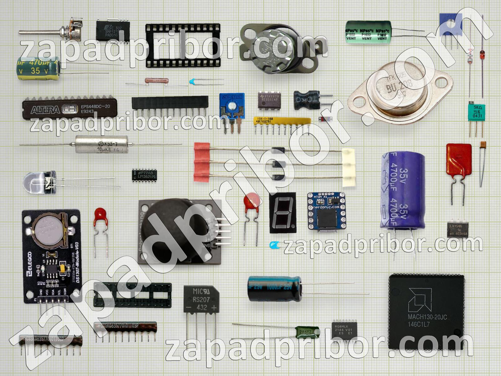 Кроме этих радиодеталей на нашем сайте вы сможете найти большой перечень компонентов. Осуществляйте поиск по основным типам радиодеталей таких как транзистор, светодиод, индуктивность, тиристор, реле, контакты, экран, дисплей, конденсатор, микросхема, диодный мост, трансформатор, фотодиод, усилитель, соединитель, датчик, разъем, адаптер, резонатор, переключатель, тумблер, дроссель, диод, резистор, кнопка, колодки, индикатор, преобразователь и другие.