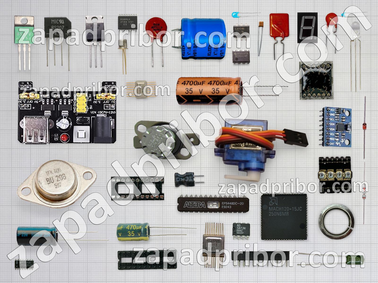 Кроме этих радиодеталей на нашем сайте вы сможете найти большой перечень компонентов. Осуществляйте поиск по основным типам радиодеталей таких как кнопка, резонатор, диод, преобразователь, светодиод, индуктивность, тиристор, диодный мост, тумблер, переключатель, экран, адаптер, соединитель, микросхема, усилитель, конденсатор, датчик, резистор, реле, дроссель, индикатор, колодки, разъем, дисплей, фотодиод, контакты, транзистор, трансформатор и другие.