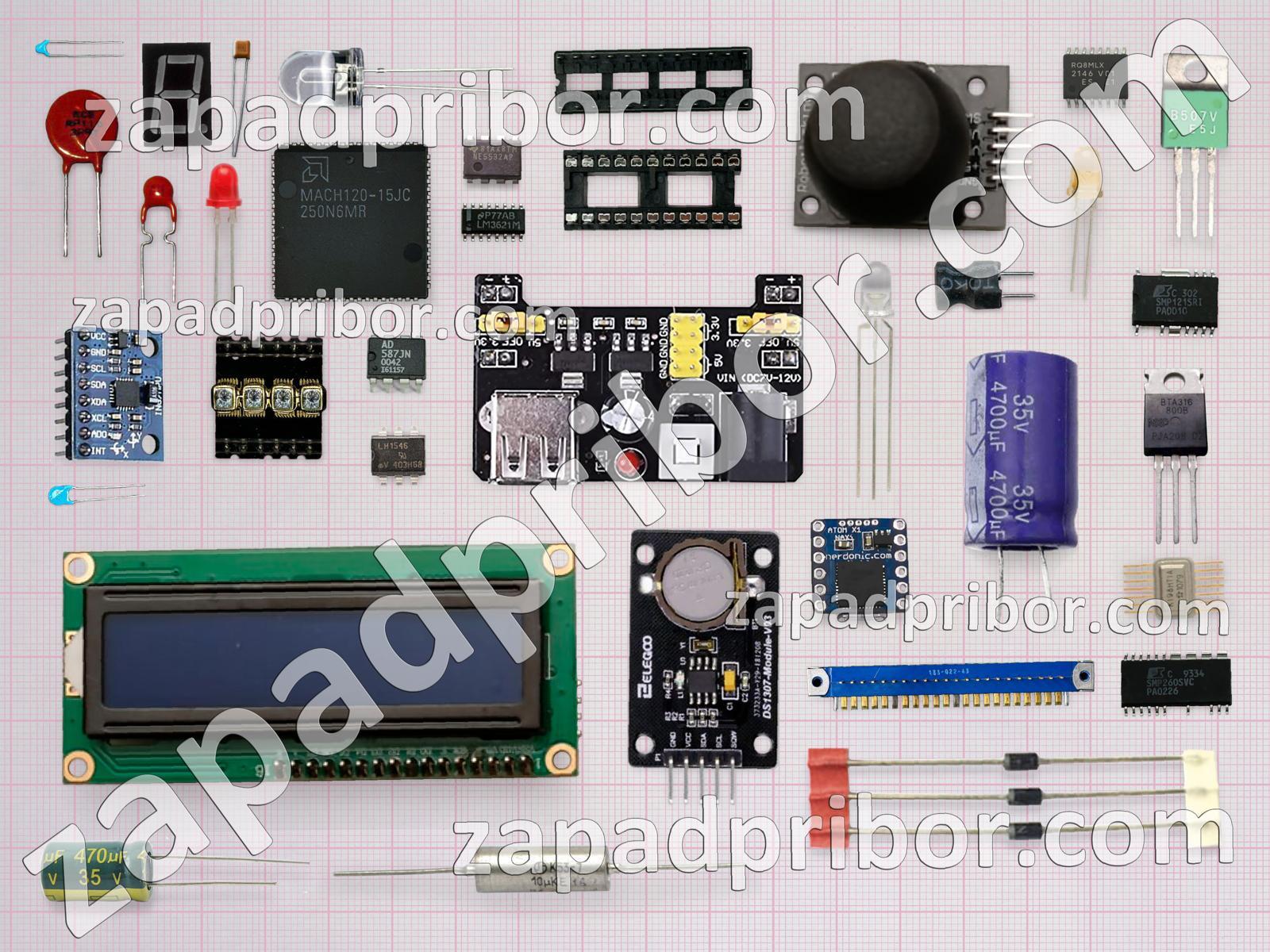 Кроме этих радиодеталей на нашем сайте вы сможете найти большой перечень компонентов. Осуществляйте поиск по основным типам радиодеталей таких как резонатор, переключатель, соединитель, резистор, индикатор, экран, кнопка, датчик, разъем, диод, фотодиод, реле, преобразователь, транзистор, контакты, конденсатор, тумблер, индуктивность, дроссель, тиристор, трансформатор, микросхема, светодиод, усилитель, дисплей, колодки, адаптер, диодный мост и другие.