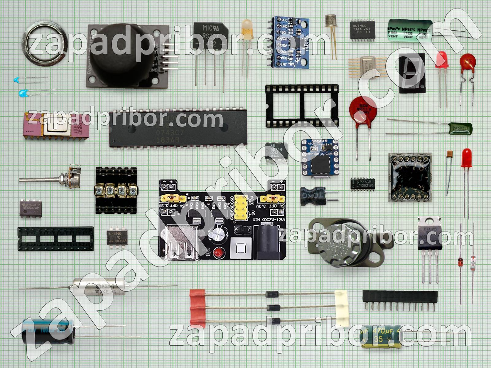 Кроме этих радиодеталей на нашем сайте вы сможете найти большой перечень компонентов. Осуществляйте поиск по основным типам радиодеталей таких как экран, усилитель, трансформатор, резонатор, реле, транзистор, датчик, разъем, конденсатор, кнопка, фотодиод, резистор, преобразователь, переключатель, индуктивность, микросхема, индикатор, тиристор, тумблер, диодный мост, светодиод, соединитель, контакты, адаптер, диод, дисплей, колодки, дроссель и другие.