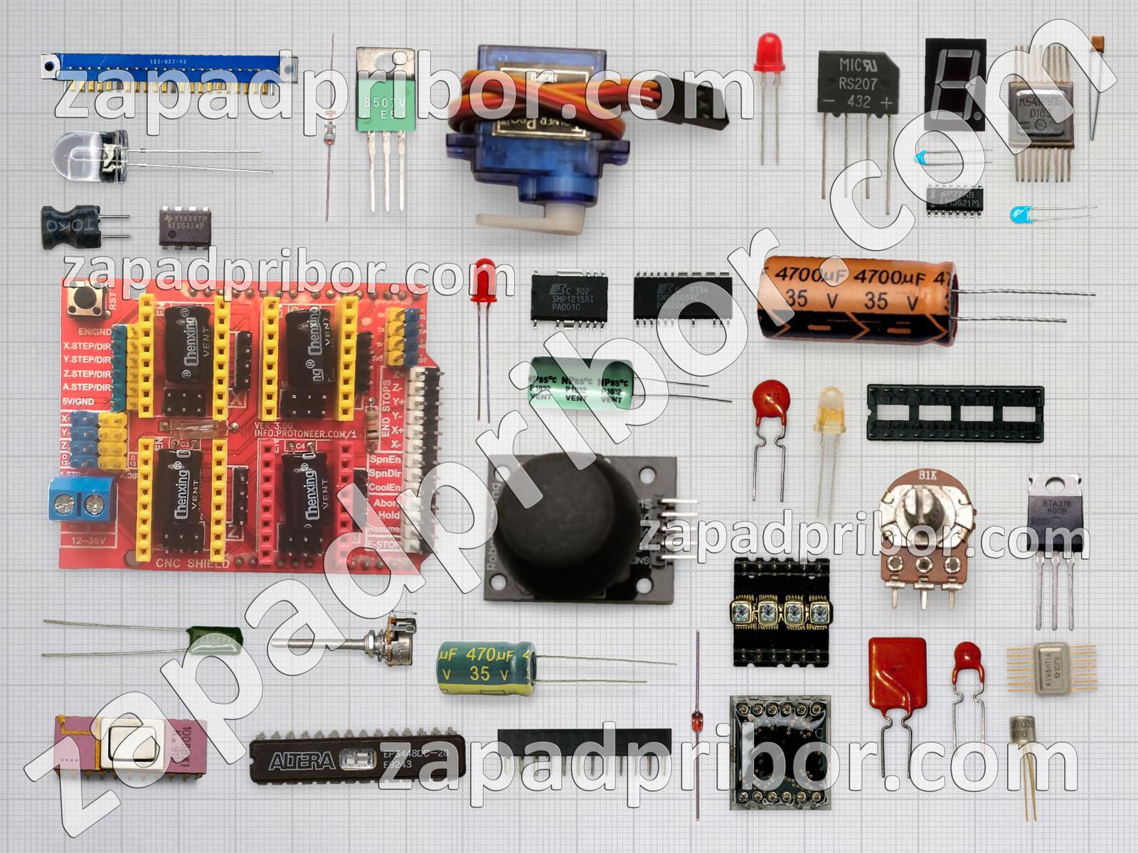 Кроме этих радиодеталей на нашем сайте вы сможете найти большой перечень компонентов. Осуществляйте поиск по основным типам радиодеталей таких как дисплей, контакты, резистор, реле, транзистор, тиристор, тумблер, трансформатор, адаптер, дроссель, экран, переключатель, усилитель, индикатор, светодиод, фотодиод, кнопка, диод, датчик, диодный мост, микросхема, преобразователь, конденсатор, колодки, разъем, индуктивность, резонатор, соединитель и другие.