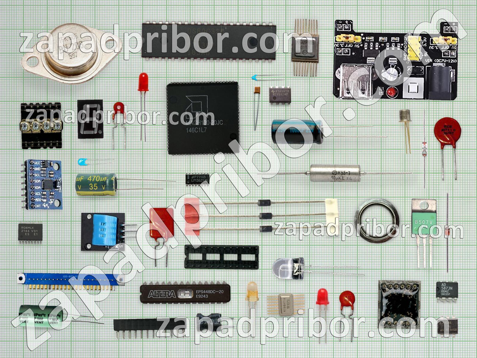 Кроме этих радиодеталей на нашем сайте вы сможете найти большой перечень компонентов. Осуществляйте поиск по основным типам радиодеталей таких как конденсатор, колодки, преобразователь, экран, резистор, усилитель, датчик, микросхема, индикатор, дисплей, соединитель, тиристор, индуктивность, диодный мост, фотодиод, адаптер, разъем, дроссель, тумблер, транзистор, реле, диод, светодиод, контакты, переключатель, кнопка, резонатор, трансформатор и другие.
