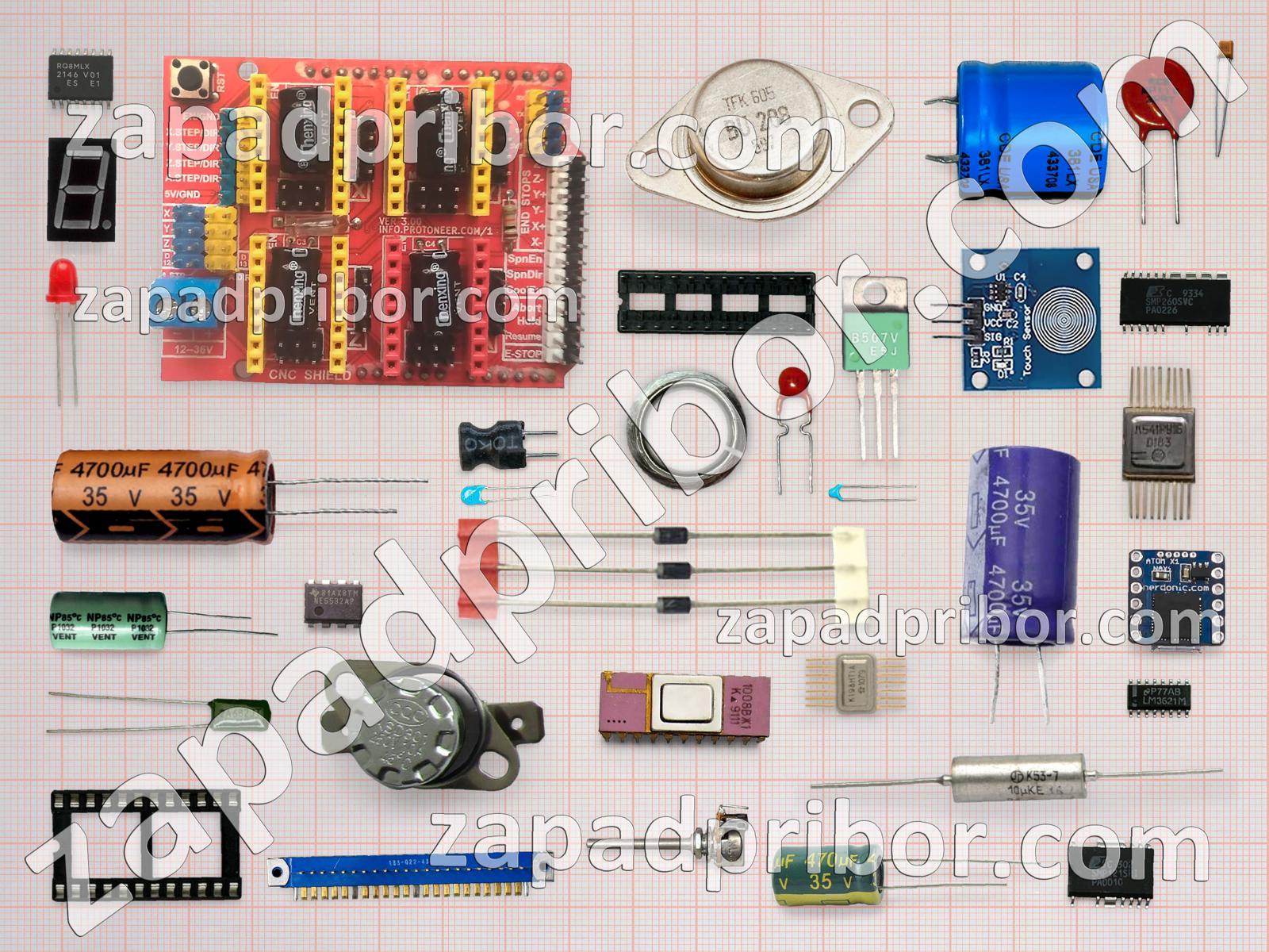Кроме этих радиодеталей на нашем сайте вы сможете найти большой перечень компонентов. Осуществляйте поиск по основным типам радиодеталей таких как индикатор, реле, диодный мост, тумблер, микросхема, усилитель, контакты, разъем, светодиод, трансформатор, фотодиод, колодки, резонатор, индуктивность, датчик, дисплей, резистор, соединитель, адаптер, преобразователь, тиристор, дроссель, конденсатор, транзистор, переключатель, кнопка, экран, диод и другие.